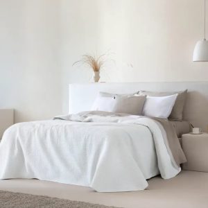 La colcha blanca es un clásico atemporal que aporta luminosidad y frescura a cualquier habitación. Su versatilidad permite combinarla con cualquier tipo de decoración, ofreciendo siempre un aspecto limpio y elegante.
