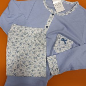 Pijama mujer largo 8098 marca Leniss | 100% Algodón Flores azul