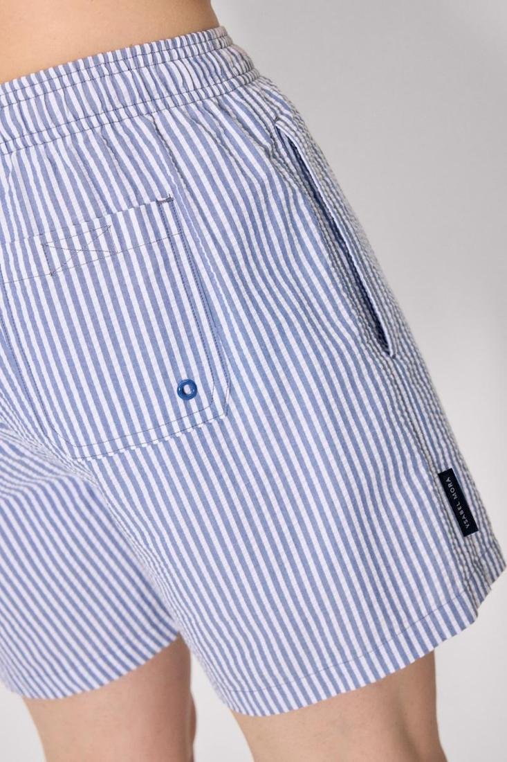 Diseñado con un moderno estampado de rayas en color azul, este bañador combina elegancia y versatilidad, ideal para cualquier ocasión. Incluye 2 bolsillos laterales y 1 bolsillo trasero para que puedas llevar tus pertenencias de forma cómoda y segura. Además, cuenta con un suspensor interior de malla blanca , lo que ofrece un ajuste perfecto y una mayor comodidad durante su uso. El cierre con cordón permite un ajuste personalizado, asegurando que el bañador se adapte perfectamente a tu cuerpo.