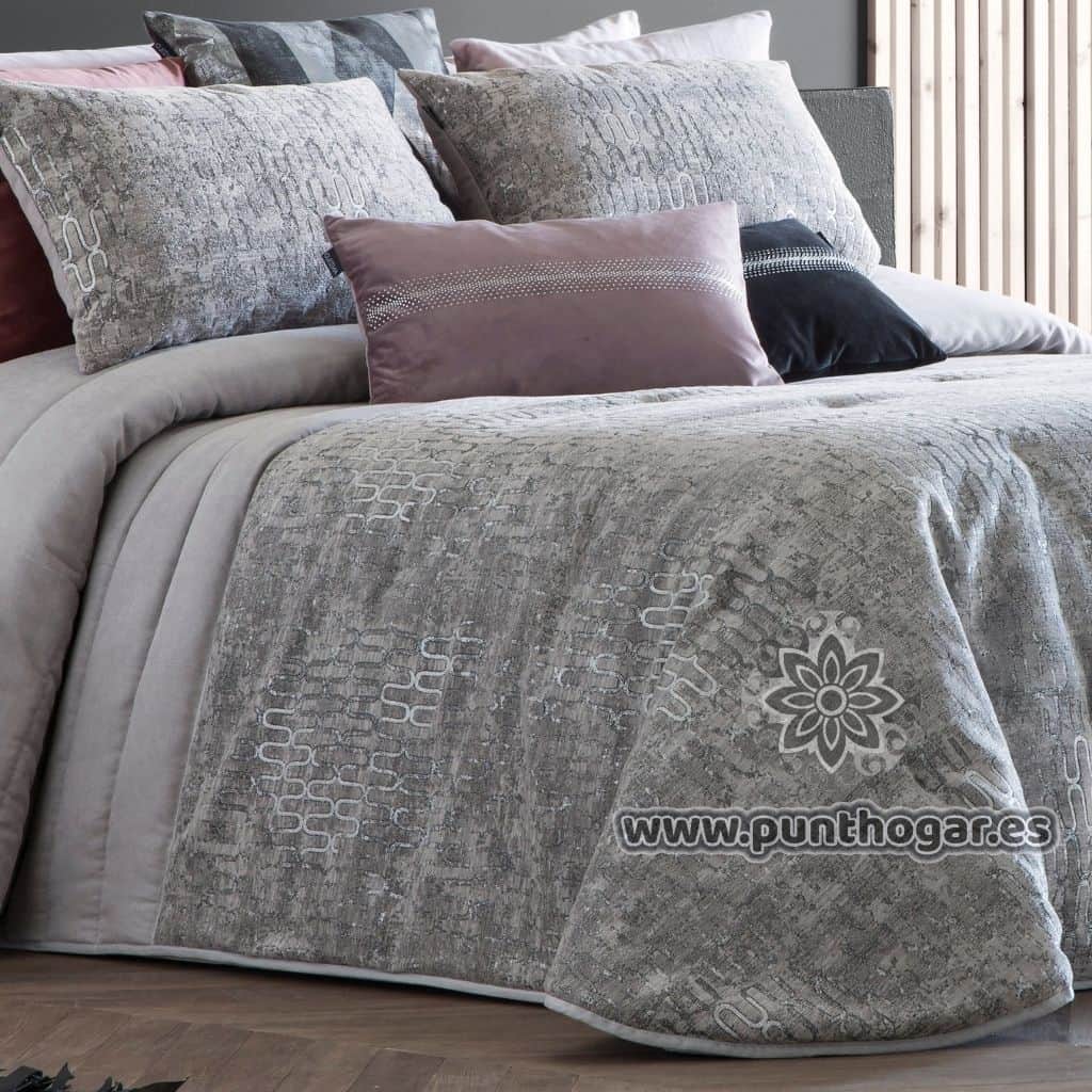 Colcha edredón para camas de 150, 160 y 180cm de gran calidad de acabados con diseño geométrico en tonos suaves y neutros muy fáciles para combinarlos con el resto del dormitorio.