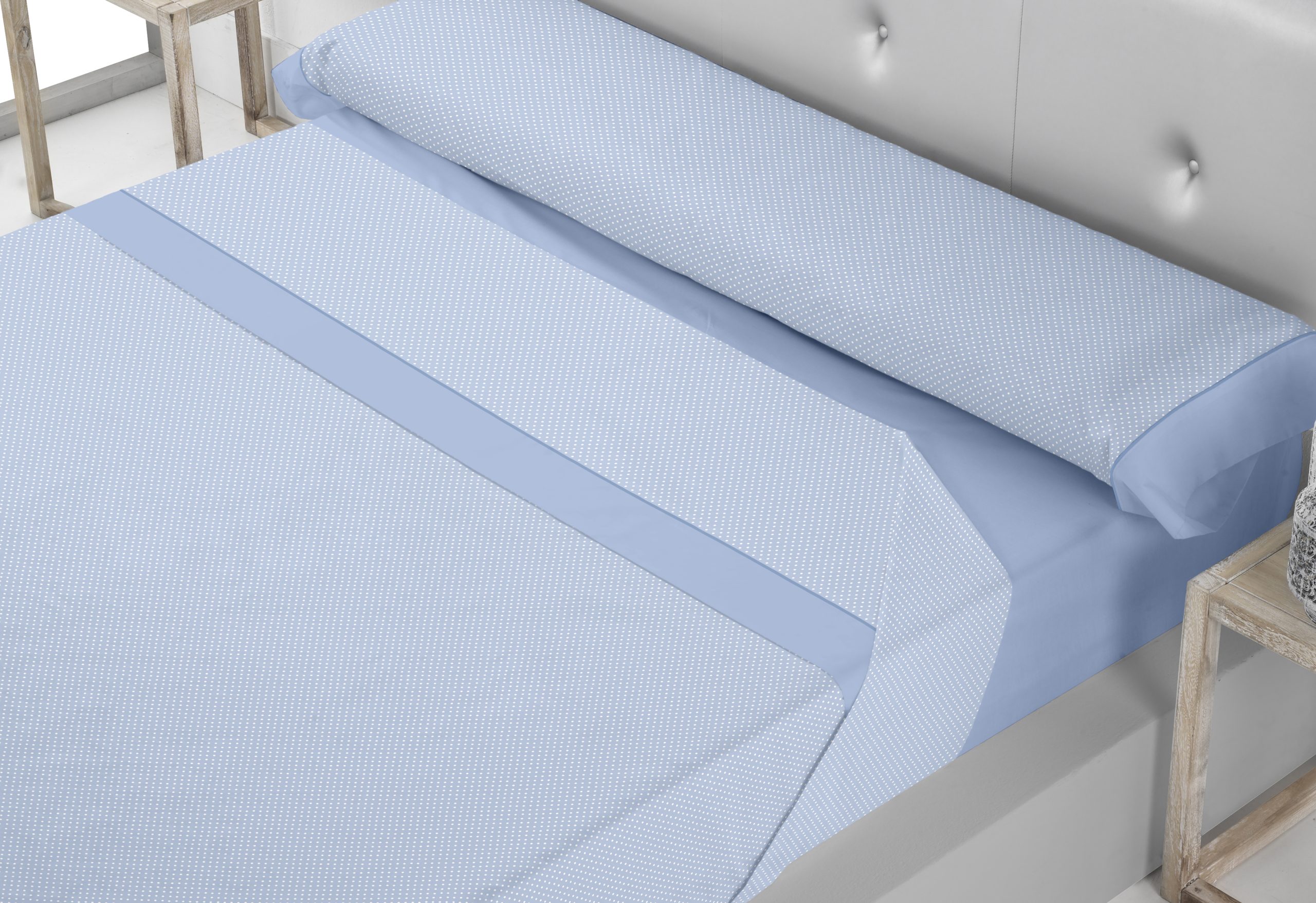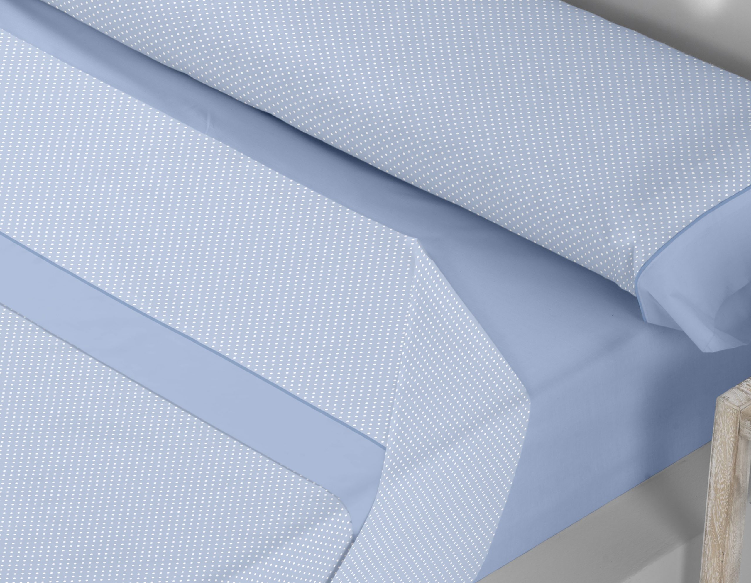 Renueva tu dormitorio con el juego de sábanas HISPALIS 8331 de la prestigiosa marca Trovador, diseñado para brindar comodidad y estilo a tu descanso. Con un delicado estampado de pequeños lunares sobre fondo color, estas sábanas combinan elegancia y versatilidad, adaptándose a cualquier decoración. Fabricadas con una mezcla perfecta de 50% algodón y 50% poliéster, estas sábanas ofrecen una sensación suave al tacto, garantizando frescura y transpirabilidad. El algodón aporta confort y absorción, mientras que el poliéster mejora la resistencia y facilita el mantenimiento, asegurando una larga vida útil incluso tras múltiples lavados.