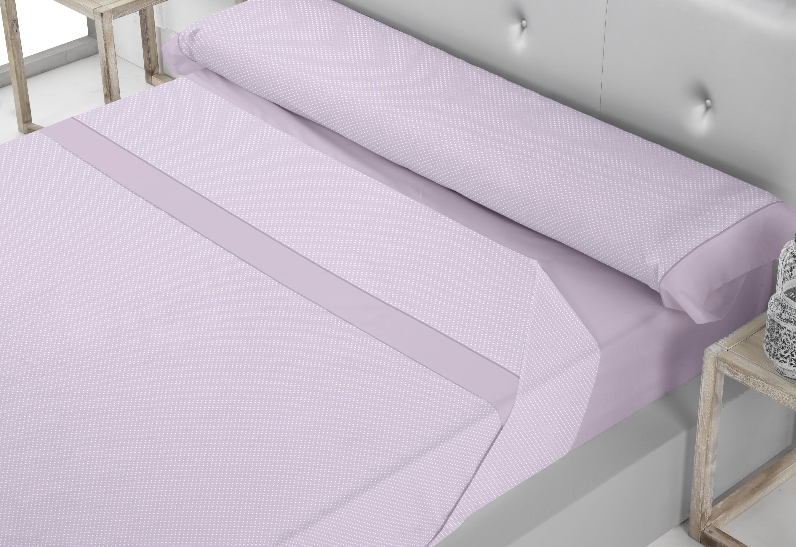 El diseño de listas minimalista del modelo HISPALIS 8331 es ideal para quienes buscan un toque suave de distinción en su ropa de cama. Presenta un delicado patrón de finos lunares con cenefa lisa al tono de color y bajera también lisa coordinada, evocando un estilo natural y elegante. Disponibles en dos colores elegantes:
