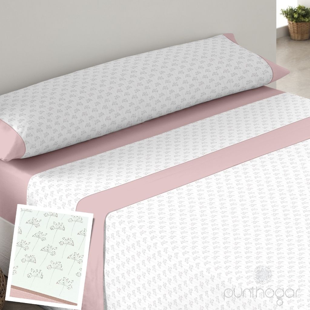 El diseño floral minimalista del modelo PROVENZA 8524 es ideal para quienes buscan un toque de distinción en su ropa de cama. Presenta un delicado patrón de flores estilizadas con finos tallos y pequeñas esferas en tonos sutiles, distribuidas armoniosamente sobre un fondo claro, evocando un estilo natural y elegante. Disponibles en tres colores elegantes: