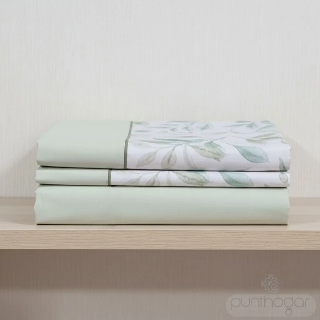 Juego de Sábanas Casa Campo TEMO – Nude y Verde | 50% Algodón 50% Poliéster