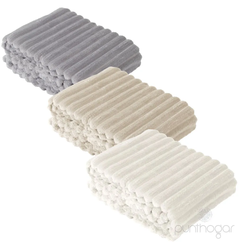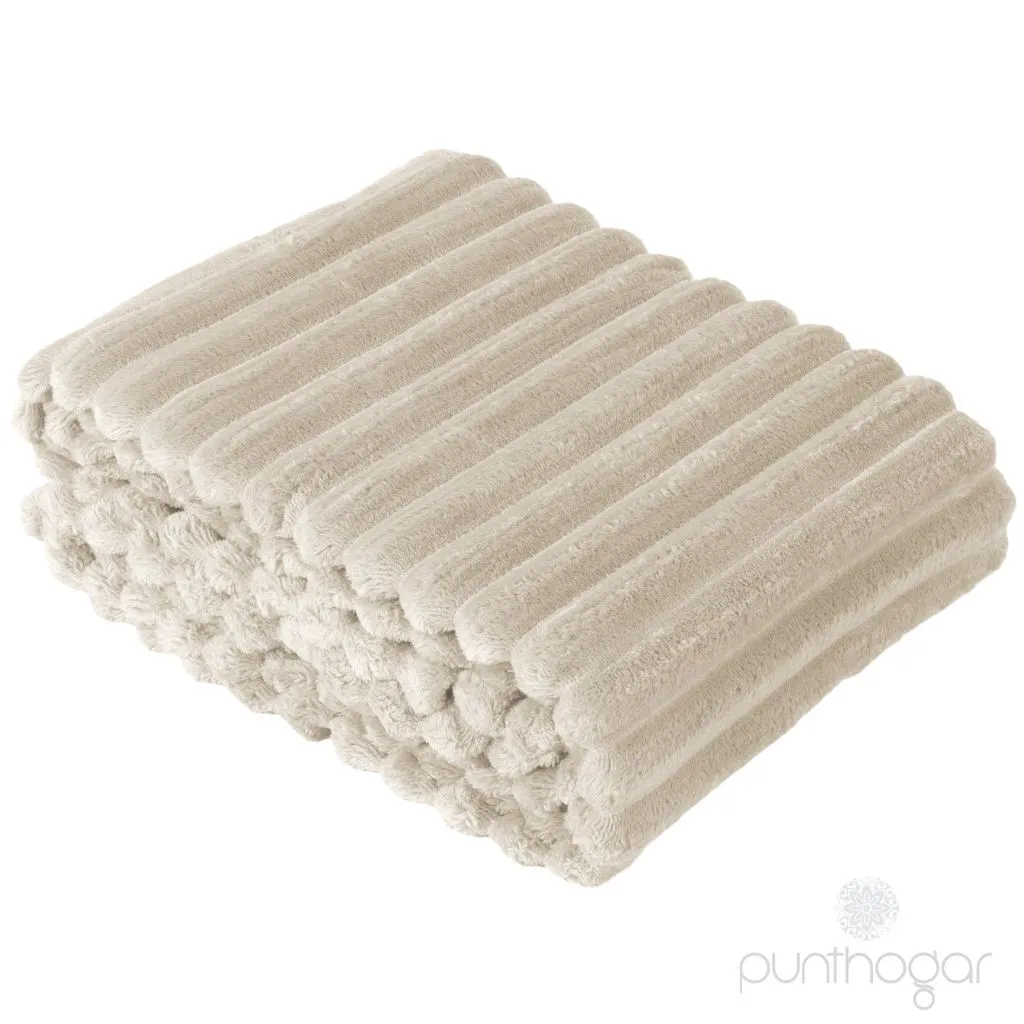 Manta sofá de tacto aterciopelado con tejido de gran calidad que nos trae la marca Manterol. El plaid presenta una textura acanalada o de «canalé», lo que le otorga un aspecto visualmente interesante y táctilmente agradable. Estos canales son suaves y redondeados, creando una superficie mullida y acogedora.