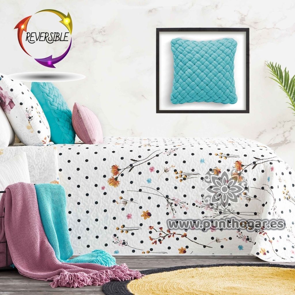 El diseño de esta colcha de cama es reversible con lo que podrás cambiar el look de tu dormitorio en el momento que te apetezca gracias a sus dos estampados totalmente distintos.
